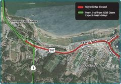 - US-101 SB Traffic from the Golden Gate Bridge will be detoured to SR-1 (19th Avenue/Park Presidio) and Geary Boulevard or California Street to US-101 / Van Ness Avenue.