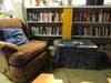 There is a tikki bar themed kitchen (left over from when the space housed Jungle Vibes toy store), a reading nook stocked with books on politics and non violence and a 500 square foot dance floor with a wall of mirrors and a sound system.