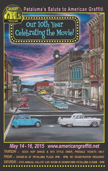 On May 16, Petaluma will celebrate the 10th anniversary of Petaluma’s Salute to American Graffiti, sponsored by Cruisin’ the Boulevard Inc.