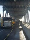 The crash ruptured one of the truck's fuel tanks, causing a 75-gallon fuel spill that flowed down the slope of the bridge and covered more than a half-mile of the roadway. None of the fuel leaked into the Bay