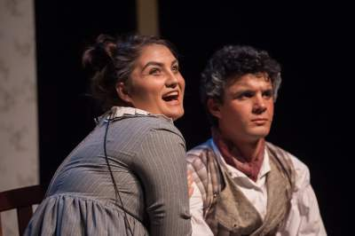 Celeste Kamiya and Zane Haney in rehearsal for "A Little Priest"