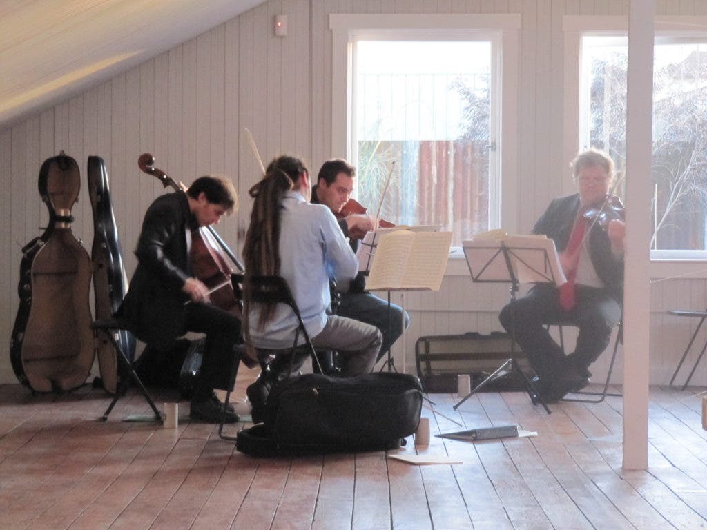 The Town Quartet was formed in Oakland at the end of the summer of '11 by violinists Garret McLean and Corey Mike, Violist Jacob Hansen-Joseph, and cellist Lewis Patzner, with the goal of rehearsing and performing some of the masterpieces of the quartet literature; a feat all too rare for the local gigging musician. They perform in casual settings, like their weekly Sunday residency at The Musical Offering Cafe in Berkeley, as well as more formal settings like private parties and concerts open to the public.