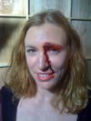 She says it will be interesting to see how well she did biting into the fake blood capsules, which are full of corn syrup and food coloring. "There is quite a skill involved with it," she said, "making sure it drizzles slowly out of your mouth."
