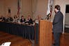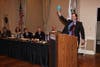 Well over 100 people attended Tuesday night's swearing-in ceremony for Margaret Fujioka, re-elected to the the city council, and newly elected council member Bob McBain