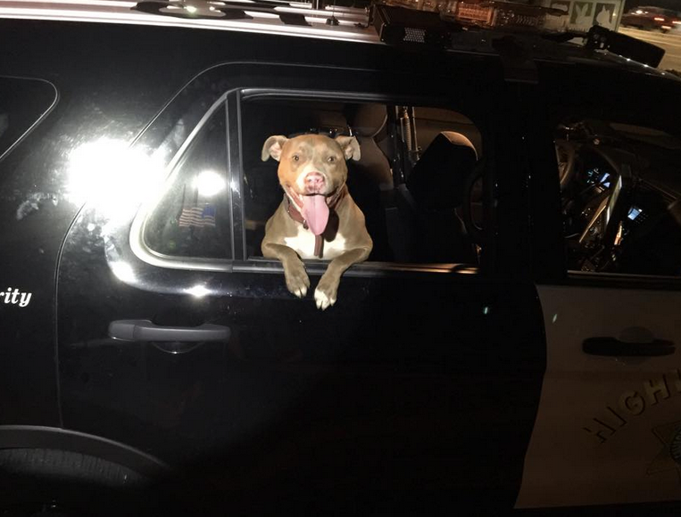 After her photo circulated online, her owners contacted the CHP and were reunited with her this afternoon. CHP officials said the dog was given the honorary title of “Junior Officer” and took one last ride in a patrol car before heading home.