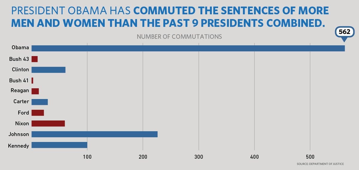 Obama has now commuted 562 sentences during his presidency, which the White House says is more than the last eight presidents combined. In May, Obama lessened sentences for 56 people.