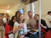 ... Michael Chiarello's bite, which was some type of crostini that had Andouille sausage on it and it was SO GOOD. I love that guy. We went to a seminar last year and had our picture taken with him and he was just so playful and charming. This year we showed up at his booth and he said, "You ladies look DELICIOUS!" How could I not try his meaty bite? I mean, come on. That one was a no-brainer! He has a restaurant called Bottega in Yountville and I've never been but I will go there one day, hopefully when he's there!