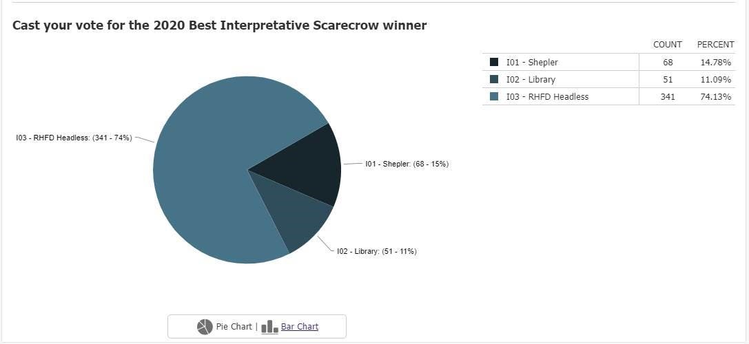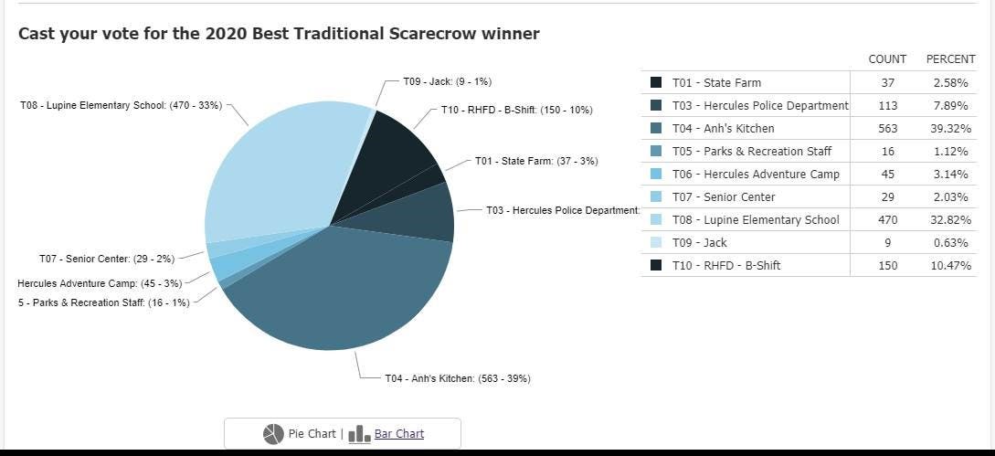 - Interpretive Scarecrow Winner - Rodeo-Hercules Fire District (74.13% votes)