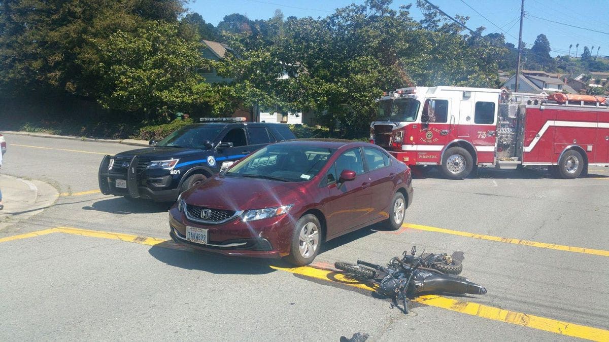 Last Friday, a dirt bike being ridden on the street illegally collided with a Honda, according to police. Police did not release an update on the rider's condition.