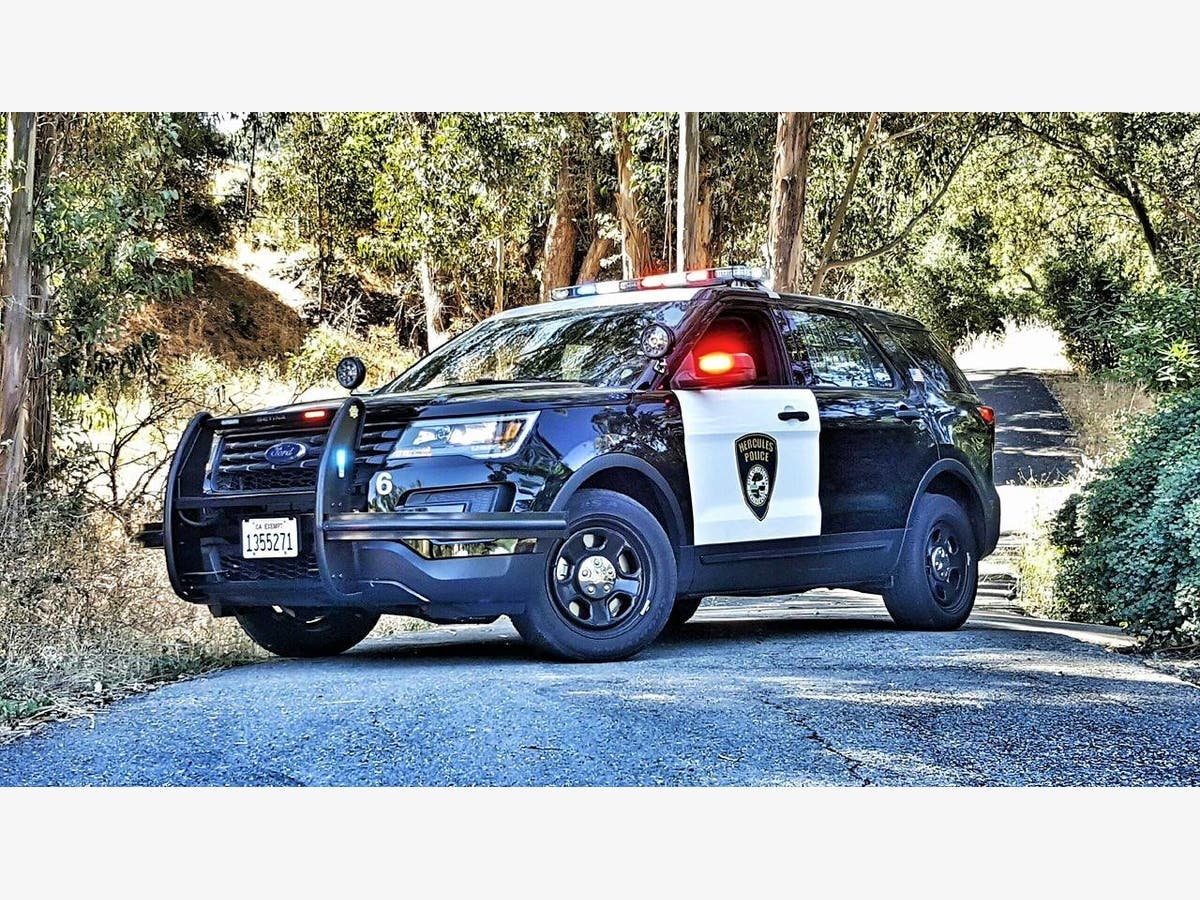 The Hercules Police officer who was in the vehicle that was hit suffered minor whiplash injuries to his neck. The male suspect was also injured when he became combative in the police vehicle and banged his head against the screen and window. He was taken to a hospital for treatment. The second suspect arrested is a woman. The names of the injured officer and the two suspects are being withheld by Hercules Police.