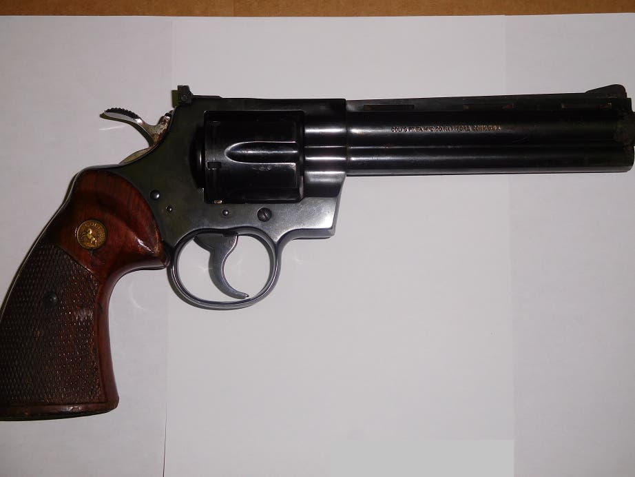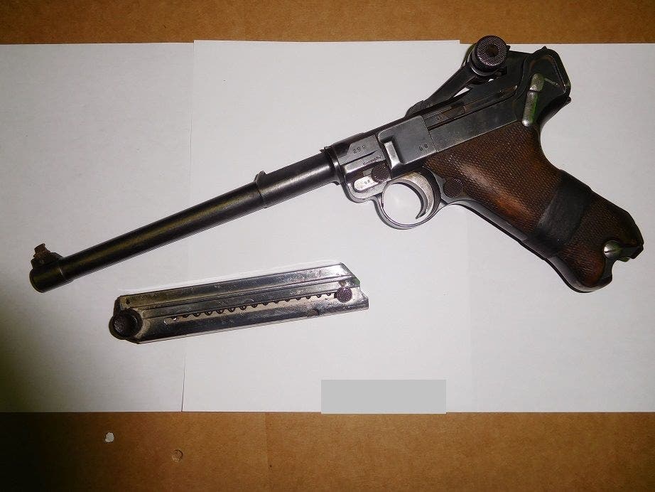 A search turned up a .357 Colt Python Magnum, and a P8 Luger. The Colt had been reported stolen.