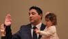Pete Murray announced the swearing in of Norma Martinez Rubin by former Pinole City Attorney and Current Superior Court Judge, Ben Reyes. Then Pete Announced the swearing in of Vincent Salimi by Pinole City Clerk Patricia Athenour. Vincent took the Oath while holding his beautiful young daughter. A welcome change of a young family oriented council man. And then, without further announcement, the City Clerk administered the oath to Anthony Tave, also a young family man. All three new Council members are first time office holders and this is where the newfound hope lies.