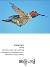 At first I sent commercial cards, but a girl in the Ukraine wrote that she liked handmade cards, nature, and animals, so I decided to print one of my hummingbird photos for her. I had read that postcards to Europe shouldn't be too flimsy or they might crumple on their long trip, so I printed the back and front on one sheet of paper, folded it over, and pasted them together to make it double-strength. Printing the back let me include a fun "Postcard" graphic I scanned from one of my vintage cards, which I also use to print on my fabric postcard backs.