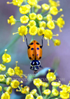 You can see one of my favorites, sent by a woman in Germany, with a ladybug poised on some white flowers. She said on the card that when she read my profile she thought it would have been better to get a card from me, so I sent her a message (you can contact people through their profiles if they agree to that) saying that I'd love to send her a card. I just mailed her my own ladybug greeting card, that's the one with the ladybug stretching to reach between flowers.