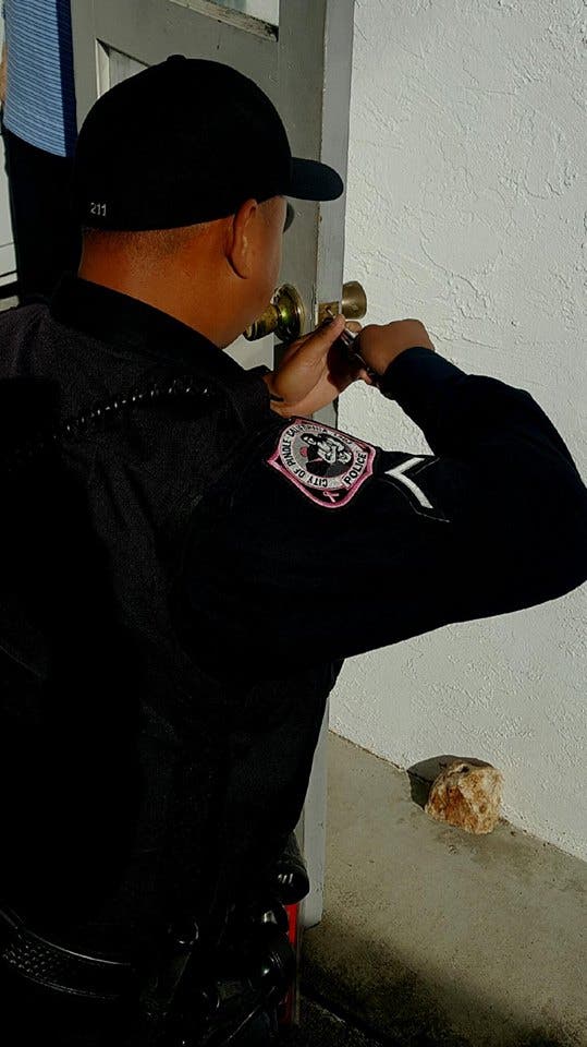 The Pinole officers went and bought a new locking doorknob. Not only that, they installed it for the homeowner.
