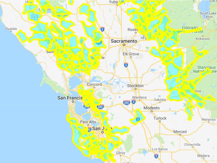 This is the PSPS map that PG&E provided on Tuesday, before the outages began: