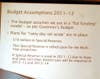 The projections presented for 2012-13 already list eliminating smaller classes in kindergarten through third grade, though Gamba said the staff knows that keeping the smaller classes is a priority with the board if funds are available. Ramsey expressed concern about having that elimination language included, but Superintendent Bruce Harter said it was only this year’s budget that was actually being adopted by the board, not the projections for future years.