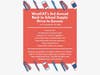 Requested items are new backpacks (or gently used), spiral notebooks, boxes of #2 pencils, mechanical pencils, binder paper, markers, crayons, highlighters, colored pencils, black composition books, erasers, glue sticks, 2-inch binders, and antibacterial gel /wipes.