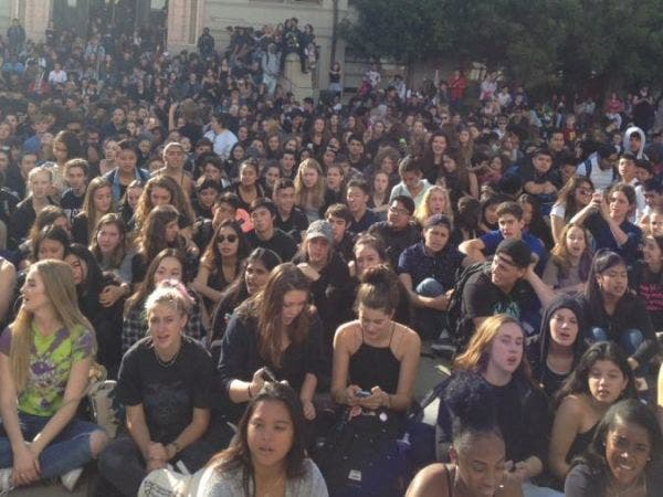 About 1,500 hundred Berkeley High School students staged a walkout at the beginning of class, around 8:20 a.m., according to Berkeley Unified School District spokesman Charles Burress.