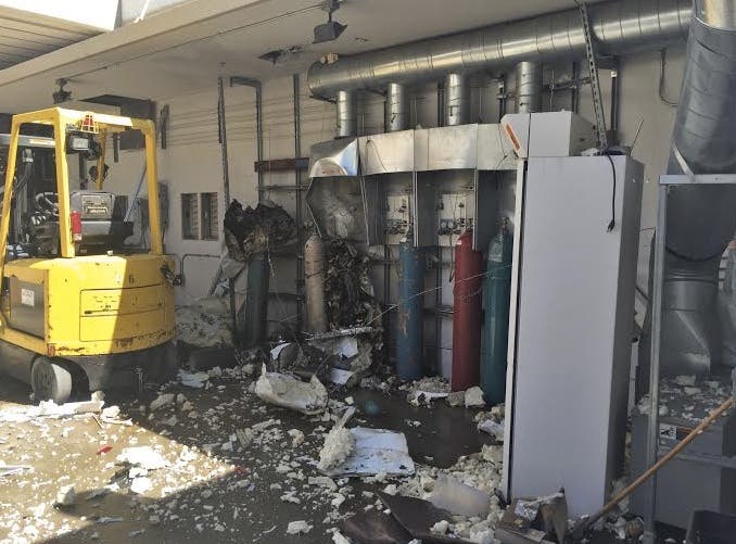 "The explosion, which occurred at a business that uses compressed gases, blew out a window and triggered a sprinkler to go off," Testa said. "We believe acetylene was the gas that first ignited."