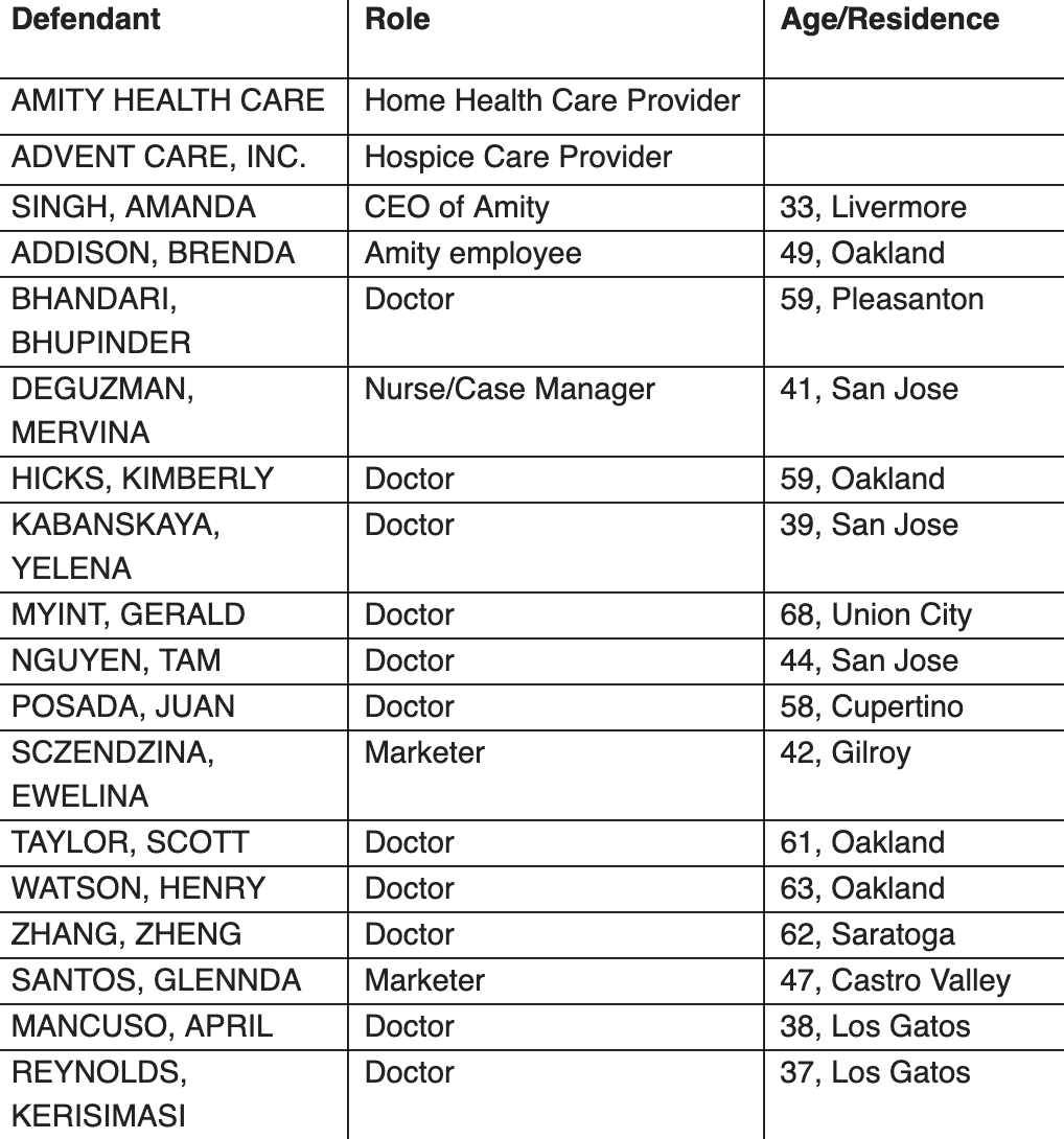LIVERMORE, CA — The CEO of Amity Home Health Care — who is a Livermore resident — has been charged in what federal prosecutors are calling the largest cash-for-patients scheme ever brought forward in the Northern District of California. Ridhima "Amanda" Singh, 33, is one of 30 defendants charged in the wide-ranging investigation that has also snared other local medical professionals — including a Pleasanton doctor and a San Ramon marketer.