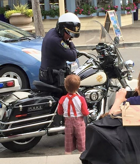Patch reader Ally Daggy Nurisio shared this sweet photo of Traffic Officer Matt Kroutil spending some with one of Pleasanton youngest citizens. The photo was taken on Main Street near Cafe Main in Pleasanton and was shared via our Pleasanton Patch Facebook page.