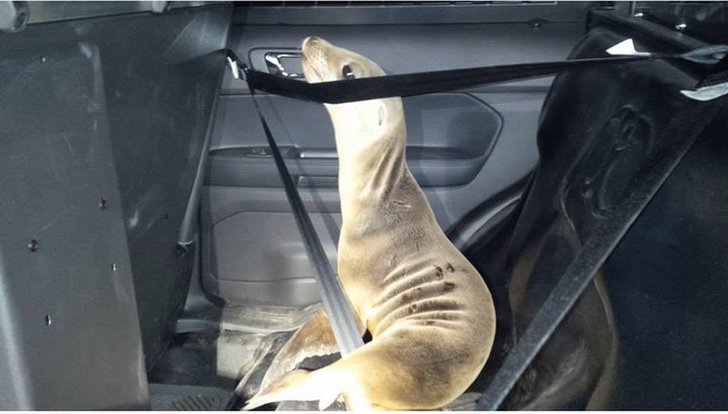--Photos courtesy MCSO via Facebook from Buckle Up for Safety! Sea Lion Pup Gets a Ride Back to the Ocean