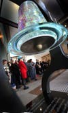 Local philanthropists unveiled a 400-pound public art piece called the “Firehouse Crystal Bell” at the on Saturday.