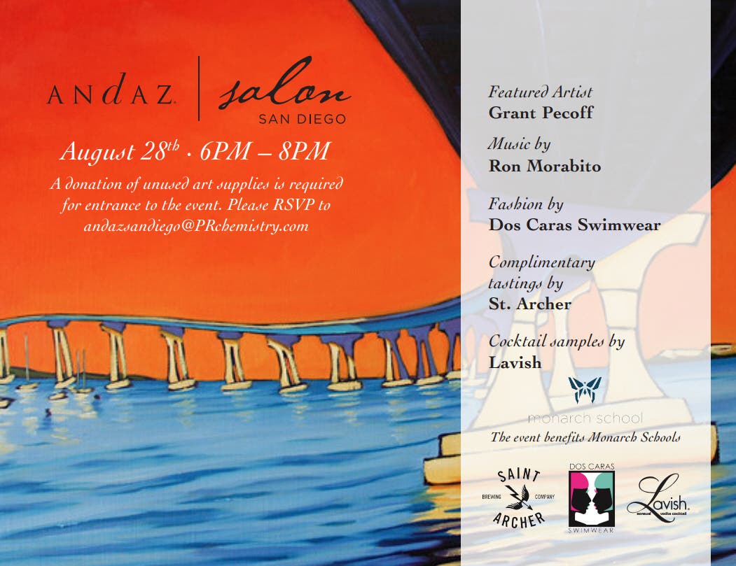 Andaz San Diego in the Gaslamp Quarter will host a special charitable evening on Thursday, August 28 from 6 to 8 p.m. to benefit arts education at the Monarch Schools. This will be the second in the hotel’s “Andaz MBA” salon series of social and cultural events, during which San Diegans and visitors alike will be invited to experience local music, craft beer and contemporary art.