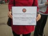 Andrea Jones, a representative from Congressman Duncan D. Hunter’s office in El Cajon, presented a certificate to Assistant Superintendent Cathy Pierce honoring (RUSD) for its “support and education of drug awareness and prevention during Red Ribbon Week 2011.”