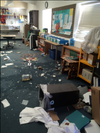 "Some of the defacement included broken windows, graffiti and fire extinguisher material discharged inside the buildings," Medina said. "Repairs and restoration costs are estimated at more than $40,000."