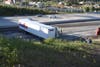 A FedEx tractor-trailer jackknifed on northbound Interstate 15 at Duenda Road around 3 p.m. today, initially blocking all but one lane and spilling 100 gallons of diesel fuel, officials said. Two passenger vehicles were also involved in the crash, including a silver station wagon.