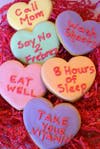 3. Custom Collegiate Convo Heart Cookies with mom's ‘reminder’ sayings.