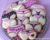 And speaking of Rebecca’s collections, there's that other little one from her bridal shower days that I’m sure her husband, Jim, is delighted with. Of course, I was requested to make a batch of pink and black Tushie Cookies. It’s fashion week in Paris and I’m considering these my spring collection. This time I did pony up a pair of panties to accompany the line. It matched the cookies, but of course! My recent philosophy is, “Those who can wear them— do. And those who can’t—bake and decorate." I guess you know which side of the cookie I frost. You could say I have a certain eye for posterior design. It’s a gift, I know. :)
