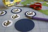 - Use double-stick tape or a dab of glue to attach the logo circle to the colored paper.