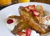 Mi Casa’s take on “French Toast” topped with fresh fruit and organic agave and caramel syrup