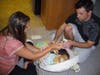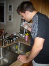 With Ani sitting between the kitchen and dining room table, the Taylors work together to sterilize the equipment.