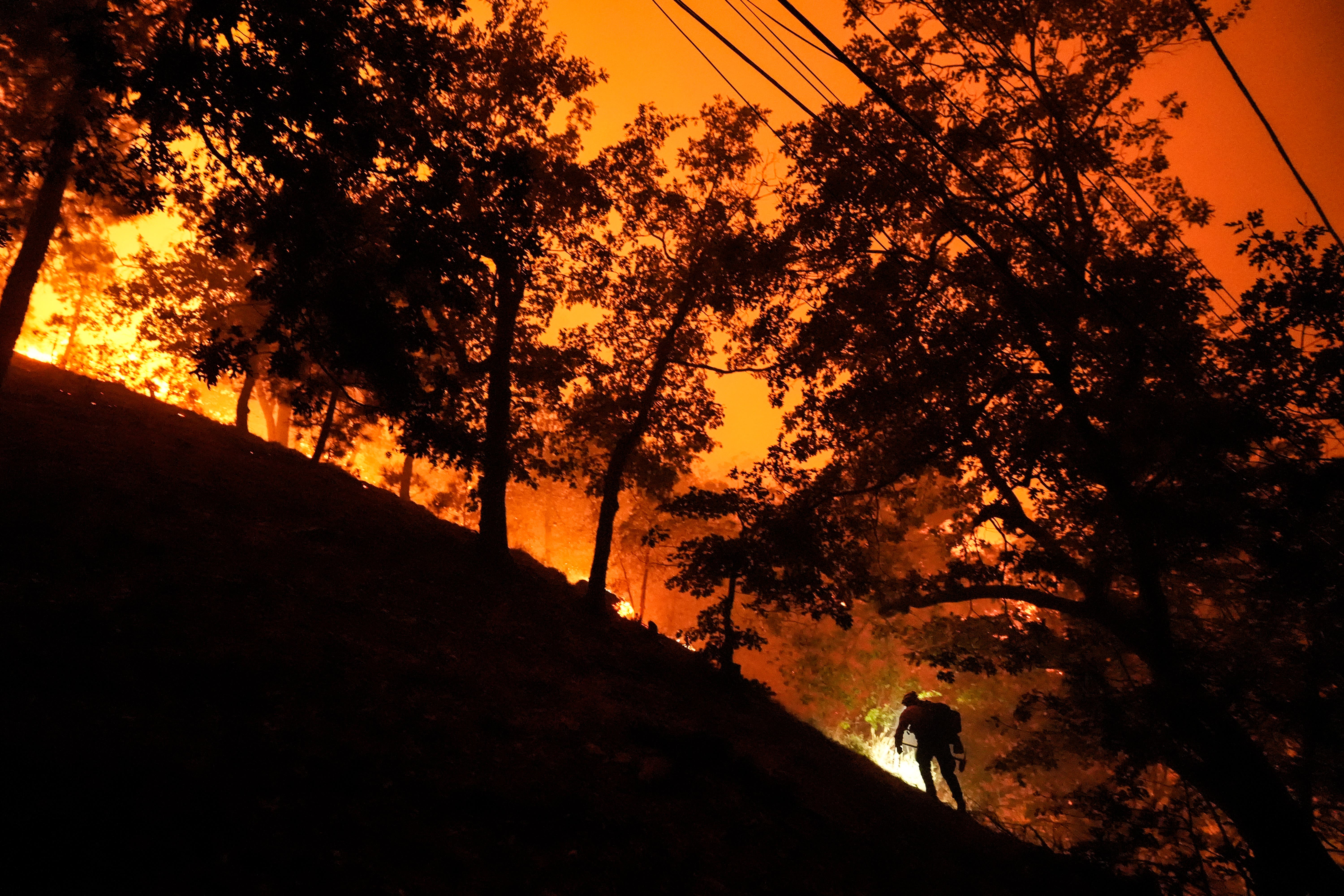 On Tuesday, the blaze was boring down on Santiago Peak, which houses a series of radio and television broadcast towers used by local media as well as federal and local government agencies.