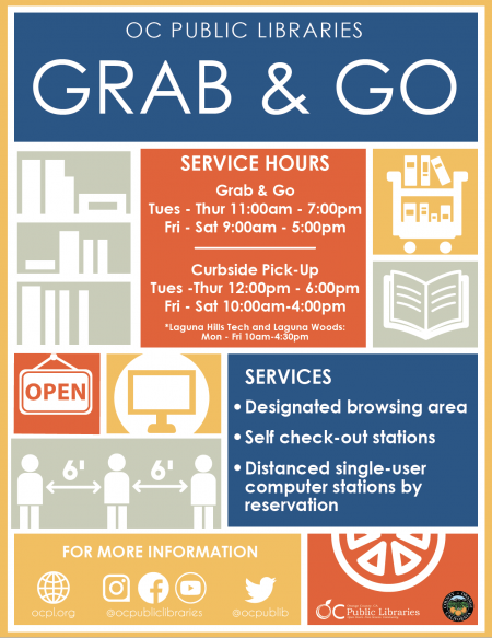 "Metered occupancy Grab and Go services are available at all OC Library Locations except the Laguna Woods library," they said.