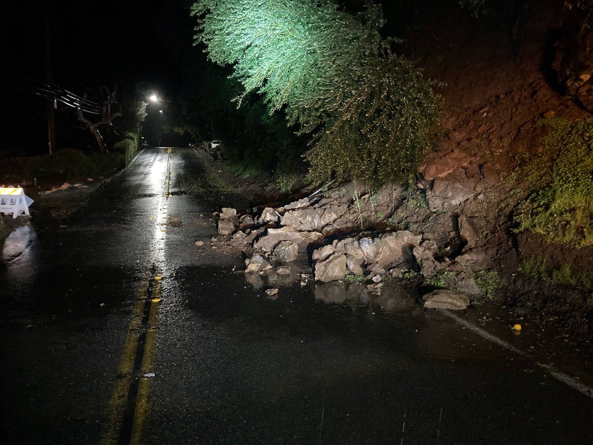In Silverado, crews cleared a small mud and rock slide that stretched across one lane of a roadway early Wednesday morning. Engineers are currently assessing the stability of the slope that collapsed, OC Public Works said.