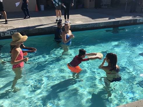 The events included freestyle, backstroke, breaststroke, butterfly and relay races as well as jogging in the pool's shallow end. The morning culminated with an awards ceremony where athletes were presented with certificates from their assigned Santa Margarita student buddy.