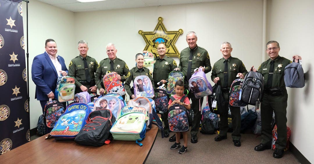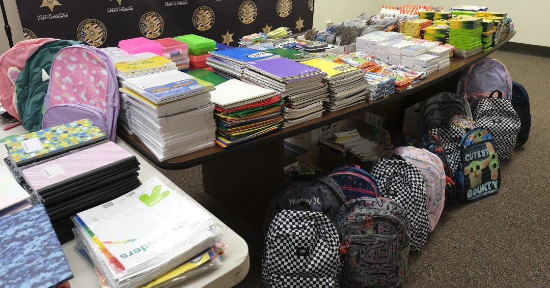 Orange County Sheriff's Department personnel gave some time and money to fill 100 backpacks with school supplies for children in need.