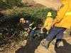Firefighters cut vegetation around the horse to free it, then used ropes looped around the horse, and tied to the bridle, to pull and leverage the horse back onto the trail off of Ohio Street in Yorba Linda.