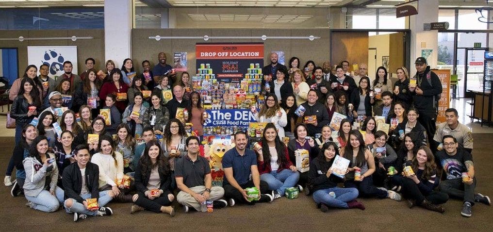 Students, faculty, and staff from 31 different departments and organizations at Cal State San Bernardino came together to contribute to the 5th Annual Holiday PSA Food Drive benefiting The DEN Food Pantry, providing emergency nourishment to students in need.