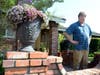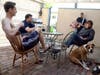 Madore is a musician who plays with the band VOLCANO, and lends his skills to a number of other bands as well. The home features a number of musical instruments. The men gathered with friends in an outdoor patio area trying to beat the heat.