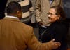 As she spoke, heads nodded and whispers of agreement spread through some of the crowd.