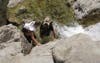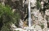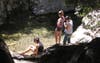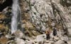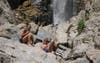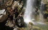 Emily Barton, 17, of Calimesa, and Morgan Kopitsky, 17, of Yucaipa, walked Monday up to the base of Big Falls in Mill Creek Canyon to "get out of the house," and to enjoy cooler conditions next to vertical sections of the cataract.