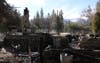 Workers early Saturday Feb. 16 placed fence around the burned husk of a cabin on Seven Oaks Road where fugitive ex-cop Christopher Dorner allegedly shot and killed a deputy, wounded another, and apparently shot himself in the head when SWAT deputies deployed pyrotechnic gas that set the structure afire with him inside.