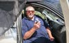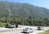 Jeff Sabatini manned one of 12 comm sites on Highway 38's dogleg curve at the Forest Falls turnoff in Mill Creek Canyon. He had his pickup rigged with a radio tower to increase his signal output and reception in the steep-sided mountain gulch.