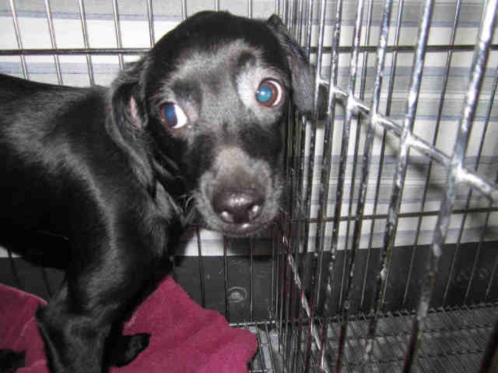 Tinkles is a black male Spaniel mix. He is three months old, and was brought to the meeting in hopes of being adopted.
